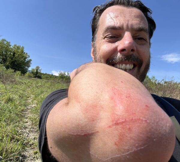 Stavo scendendo veloce, pensando di fare attenzione alle buche lasciate dagli animali. Non ho fatto in tempo a finire il pensiero che mi sono ritrovato per terra, con una piccola storta al piede sinistro.